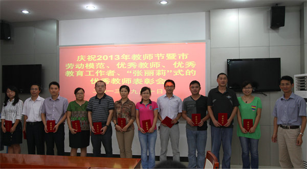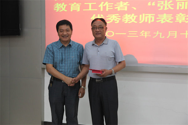 会上,金万祥副院长首先宣读了表彰决定,根据《市政府关于表彰2010-2012年度徐州市先进集体暨劳动模范的决定》(徐政发[2013]38号)、《中共开云手机在线登入委员会关于表彰2012年度“优秀教师”“优秀教育工作者”的决定》(徐工职院党发[2013]39号)以及《关于公布我院“张丽莉”式优秀教师的通知》,对徐州市劳动模范冯贵福、王鸿磊等22名优秀教师、马光辉等15名优秀教育工作者、姚琪等4名“张丽莉”式的优秀教师进行表彰;调研员王健强以及金万祥、李红、魏勇等校领导分别为获奖者颁奖。机电学院教师朱涛代表受表彰人员发言。朱涛回顾了2009年从徐工集团调入我校四年来的从教经历,从“紧贴区域经济,找准专业定位;构建课程平台,对接能力培养;加强科研能力,创新教学环境;加强师德修养,身教重于言传”四个方面,总结并介绍了在我校专业建设和教育教学改革中,贯彻推行“双能并重、三元融入、四层递进、产学互动”人才培养模式的工作中积累的经验;朱涛表示在教学和生活中,要以从事高职教育为荣,将自身的利益与学校的利益紧密融合,同成长,共发展;也希望通过我校广大教师努力,创出我们“徐工院”品牌。