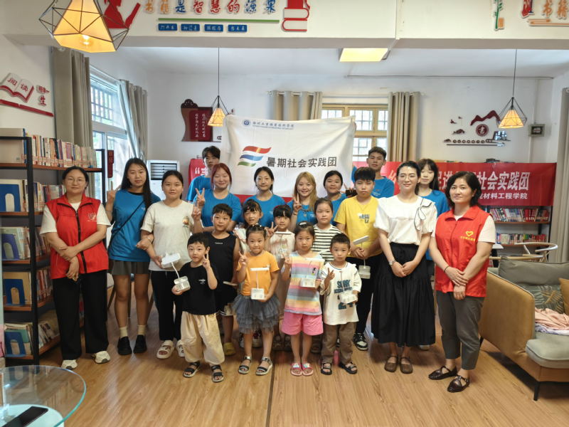 专业实践助力人才振兴。在汉王镇文明实践所阅读室,实践团成员们与10名青少年面对面交流,向孩子们普及党史知识,带领孩子们通过沉浸式的美育思政课,让爱党爱国的种子植入孩子们的心灵;一对一赠送由材料学院学生自主研发设计(灯珠)的“无网关高显指LED台灯”,实践团指导老师胡童寄语在场学生:“愿你们有百折不挠的精神,有勇往直前的决心,在浩瀚的知识海洋中自由自在地遨游,并能够到达顺利的彼岸”。
